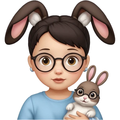 bunny ear wearing small baby dark haired curly spectacled emoji