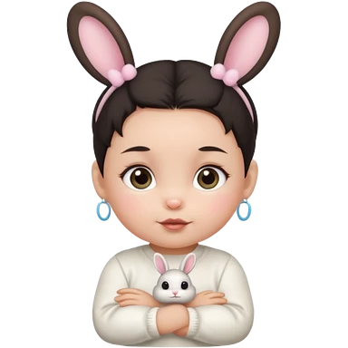 bunny ear accessory wearing small baby dark haired curly spectacled emoji