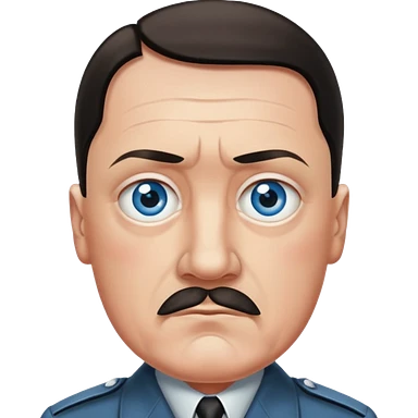 Adolf Hitler had an oval face with fair skin. His eyes were blue and his eyebrows were dark and somewhat bushy. Above his upper lip he wore a small, brush-like mustache, known as a "toothbrush moustache". His emoji