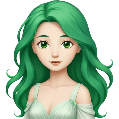 Woman with Long Emerald Hair – flowing green hair, elegant look, white dress emoji