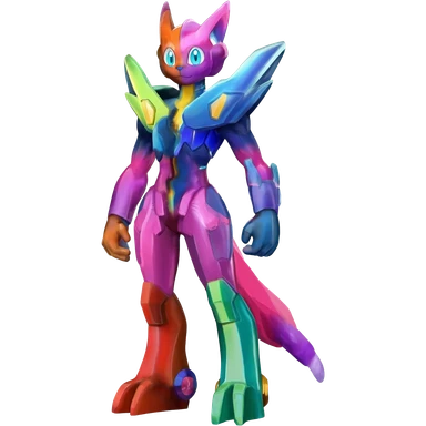 Shiny Colorful Futuristic Meloetta-Latias-Koraidon-Peppercat-Protogen-Pokémon-Digimon-Fakémon-fusion-hybrid-creature emoji