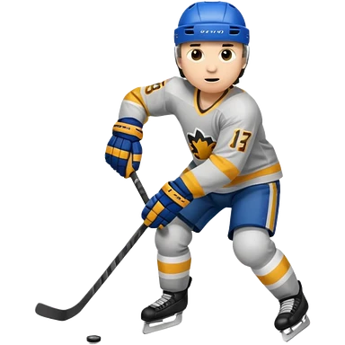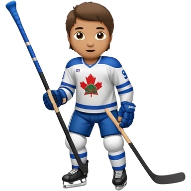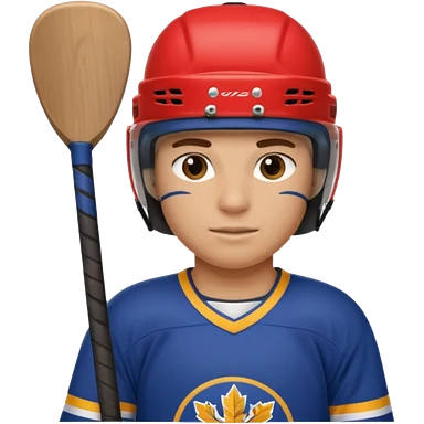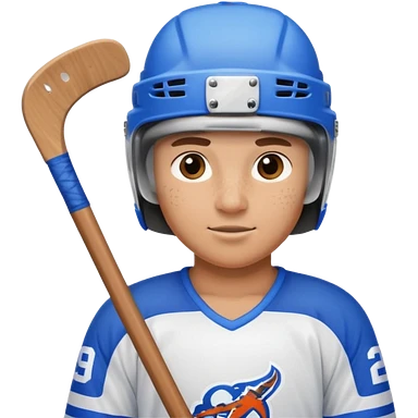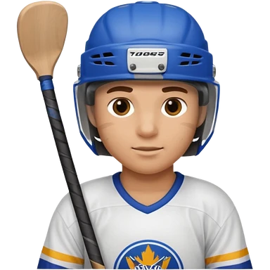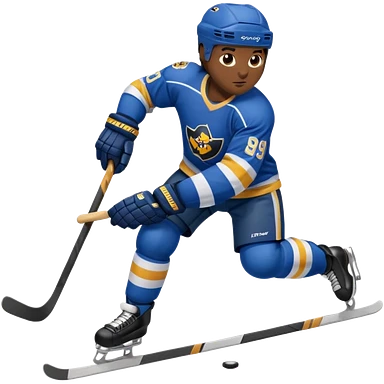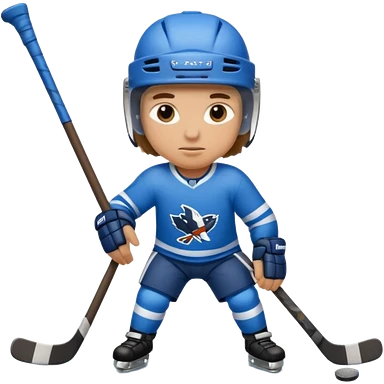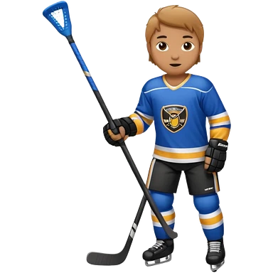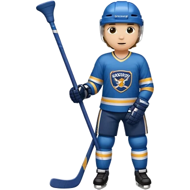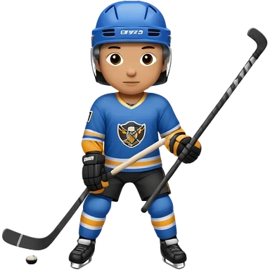 Hockey player in blue uniform with stick emoji