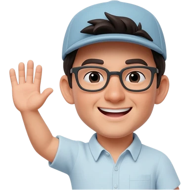 Fat man con gafas y el pelo corto diciendo hola emoji