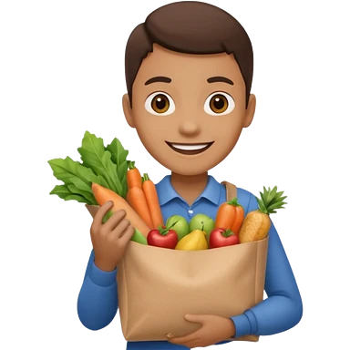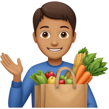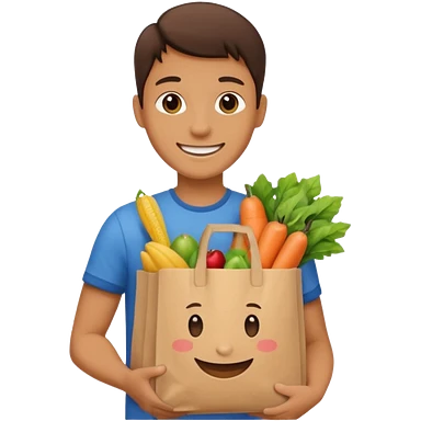 soldier holding a puffy blue grocery bag and a frying pan emoji