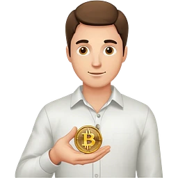 thoughtful guy holding bitcoin in his hands in a suit emoji