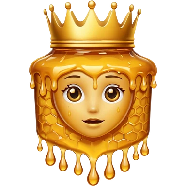 Honey jar filled with golden thick liquid, on top of the jar a big crown emoji