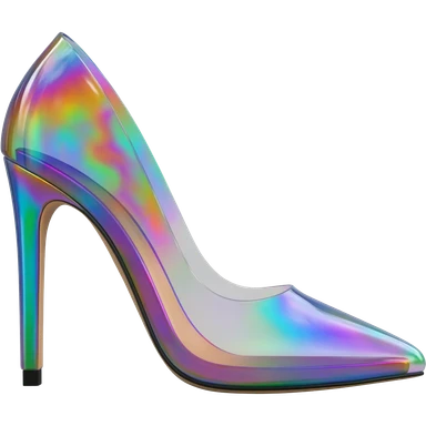 Holographic raindow effect open toe high heel pumps, side view, isolated, render, still life emoji