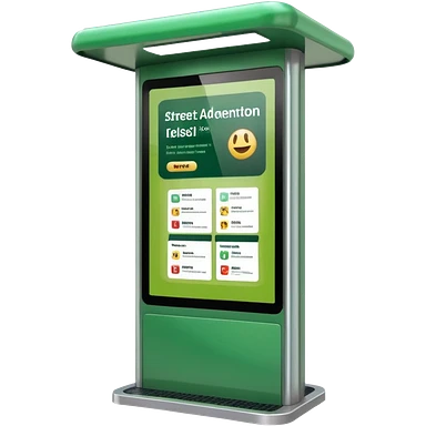 Digital Kiosk + green interface + public info, Street Advertisements. emoji