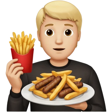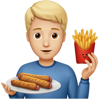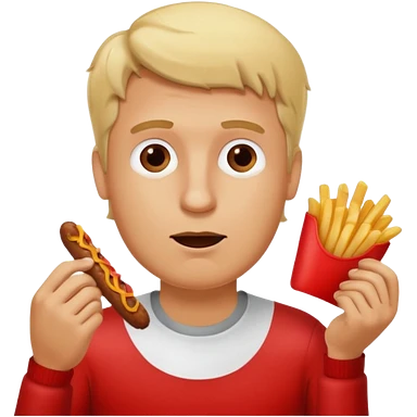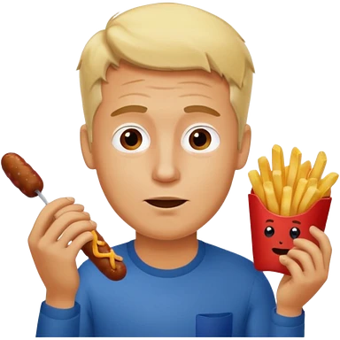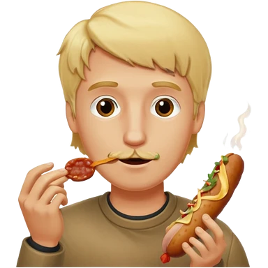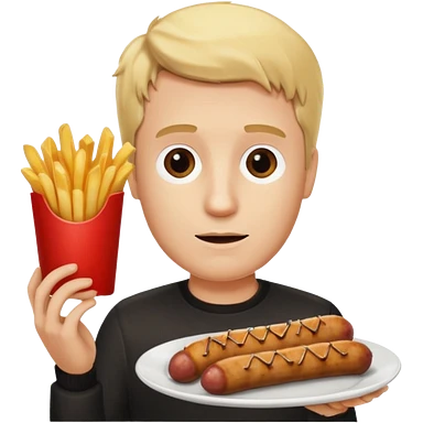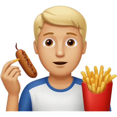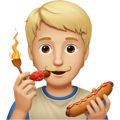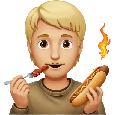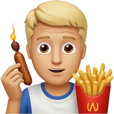 Hombre Rubio con una salchipapas pero la salchicha está quemada emoji