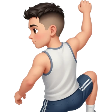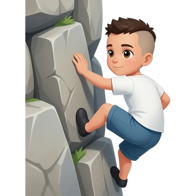 Hazme un chico con pelo rapado, en cresta y negro, ojos marrones. Y que este un poco musculoso. que este escalando de espaldas emoji
