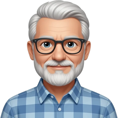 Hombre 60 años gafas ojos marrones y barba blanca emoji