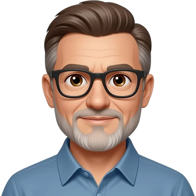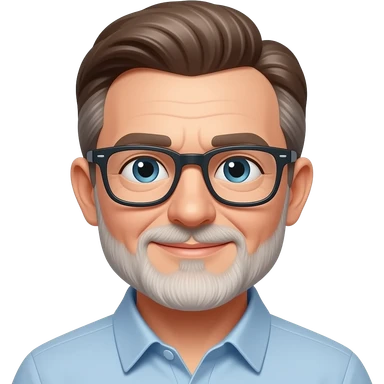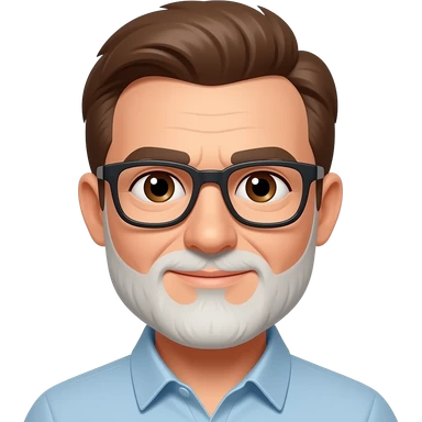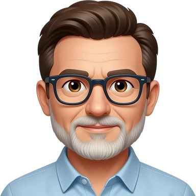 Hombre 60 años pelo marrón con algunas canas gafas ojos marrones y barba blanca muy corta emoji