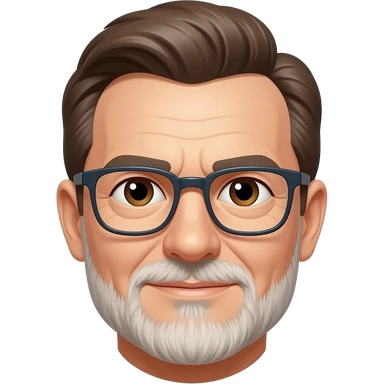 Hombre 60 años pelo marrón con canas gafas ojos marrones y barba blanca muy corta emoji