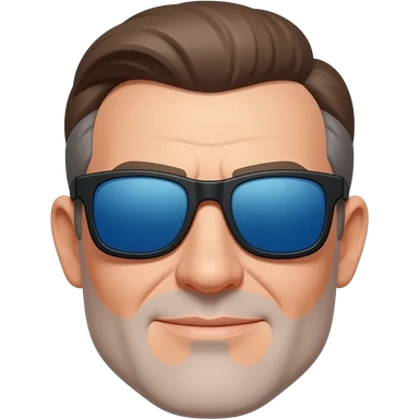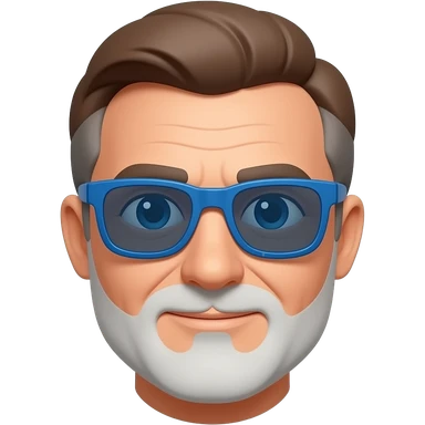 Hombre 60 años pelo marrón con canas gafas de sol azules y barba blanca muy corta emoji