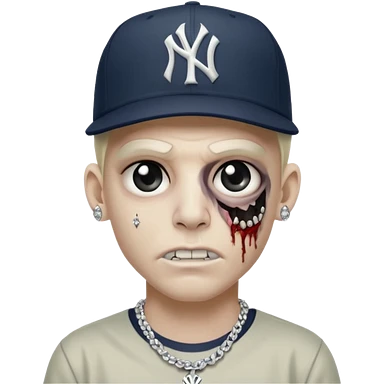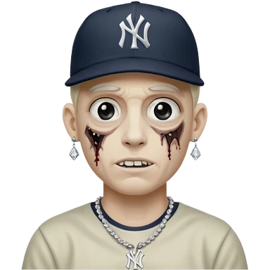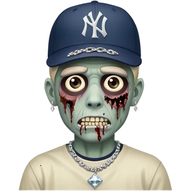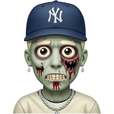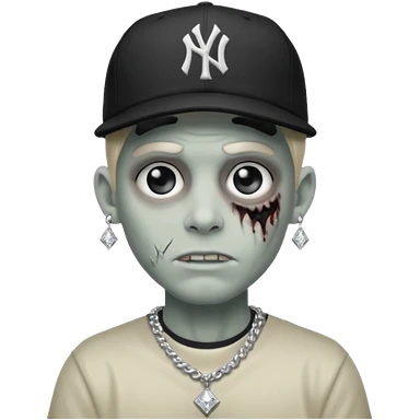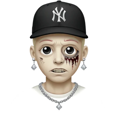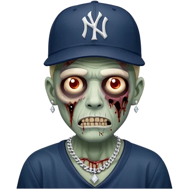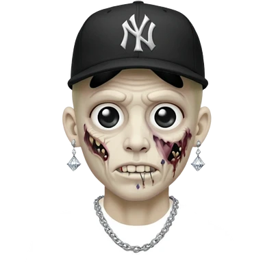 Zombie con aretes con una gorra new York yankee y una cadena de diamante hombre aretes pequeños y de negro y blanco emoji