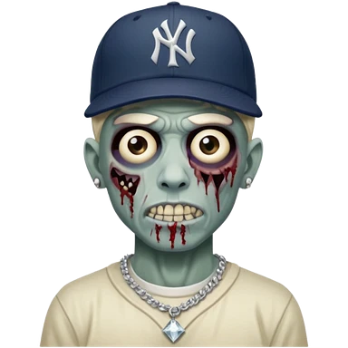 Zombie con aretes con una gorra new York yankee y una cadena de diamante hombre emoji