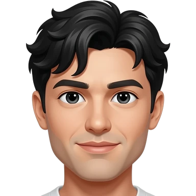 hombre blanco y cabello color negro, ondulado y corto, y ojos negros emoji | AI Emoji Generator