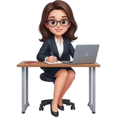 Asistente mujer en escritorio con computadora emoji