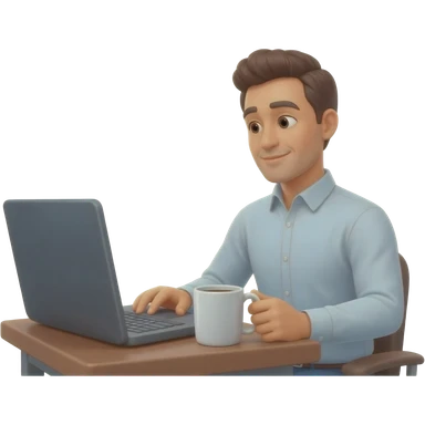 Hombre camisa manga larga en escritorio con pc sin taza de cafe emoji | AI Emoji Generator