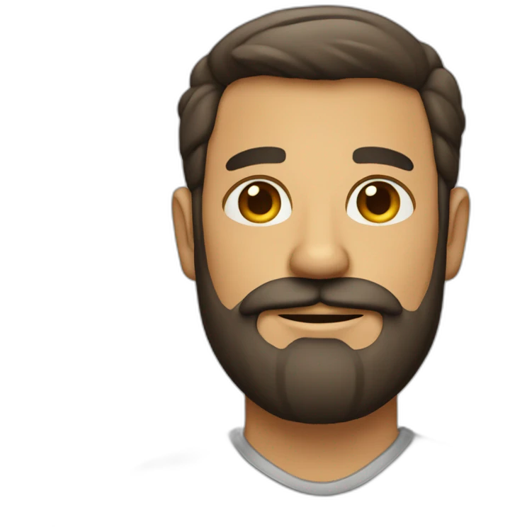 hombre con barba y coleta con ojos cafe y pelo corto por los lados emoji