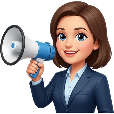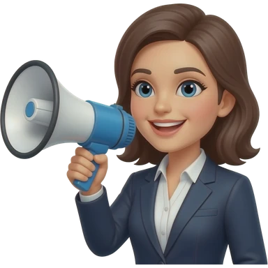 Mujer curvy afro, con vestimenta cómoda y delantal, y un megáfono en la mano emoji