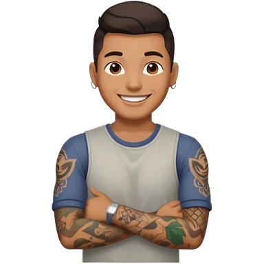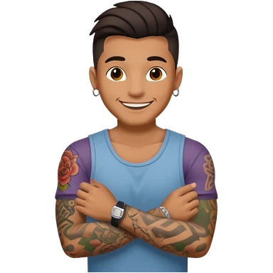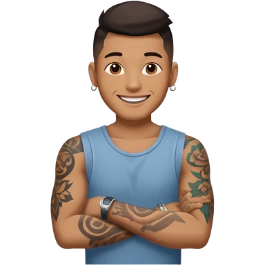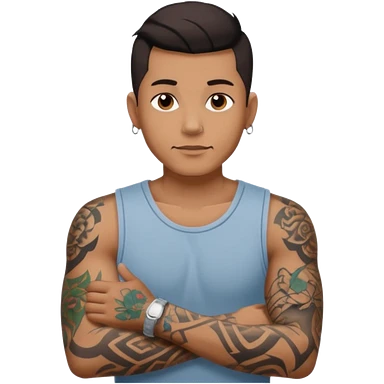 hombre con tatuaj en los brazos con ropa sin piercings emoji | AI Emoji Generator