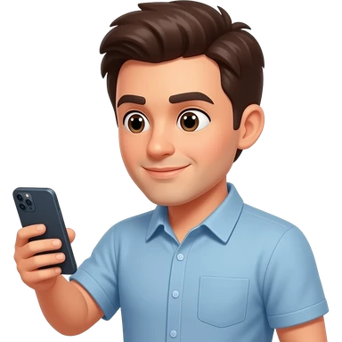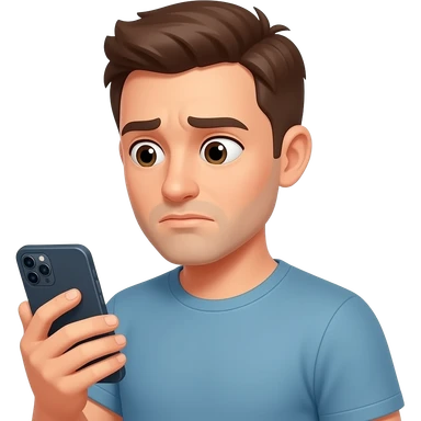 hombre,con celular en mano,prestando atencion en su celular,en el rostro se refleja un poco de agotamiento emoji