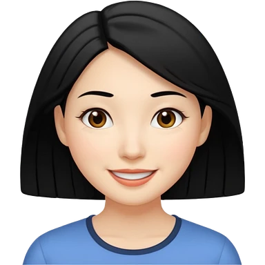 mujer sonrriendo blanca con los ojos achinados, y cabrllo negro emoji