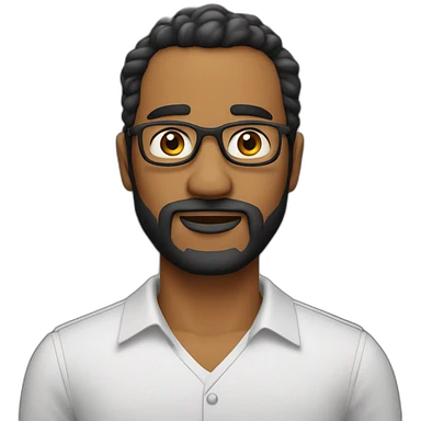 Hombre moreno con capello muy corto ondulado canosa, barba canosa con lentes de color negro emoji