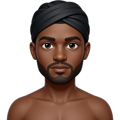 Hombre color negro sin playera con trapo en la cabeza color negro emoji