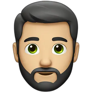 hombre blanco de 60 años, con barba blanca y negra por las canas. Pelo negro y largo, aunque algo escaso por la calvicie. emoji