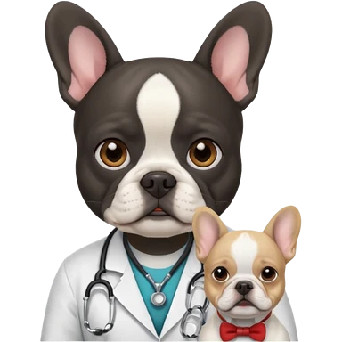 médico negro con bulldog francés blanco emoji