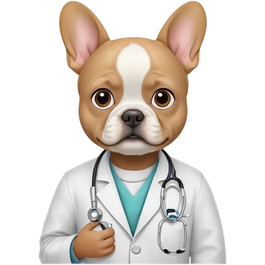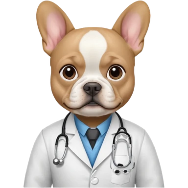 hombre médico de color de tez negra que sostiene un bulldog francés blanco emoji | AI Emoji Generator