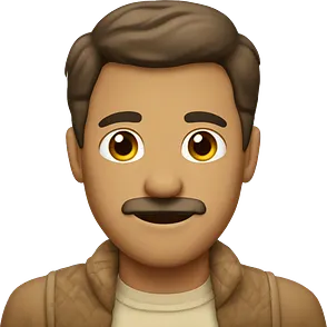hombre moreno oscuro, fornido, de cabello corto canoso, ojos marrones, cejas pobladas gruesas, barba canosa con sueter emoji | AI Emoji Generator