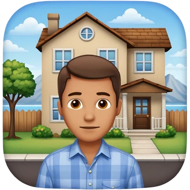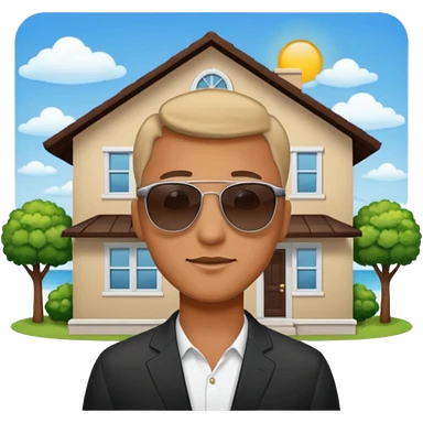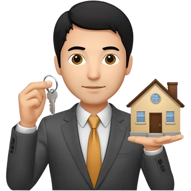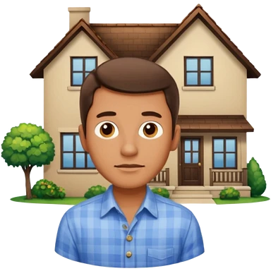 hombre de pelo negro con algo de canas y un poco de baraba comprando una casa emoji