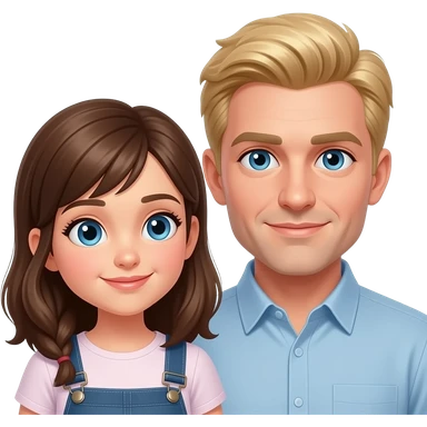 Niña rubia con flequillo, pelo por encima del hombro con trenza en un lado. Ojos azules emoji