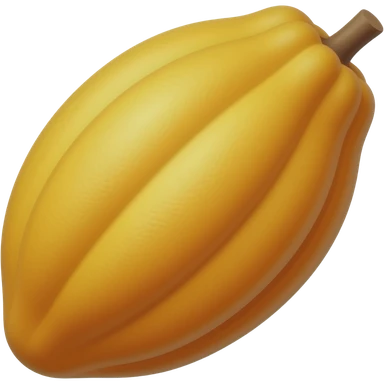 An emoji of a whole cacao fruit, Apple emoji style, high-quality 3D rendering. The fruit should have a vibrant yellow-orange color with realistic groove textures on the peel. Isolated white background, soft lighting, and subtle shadows to give depth. emoji