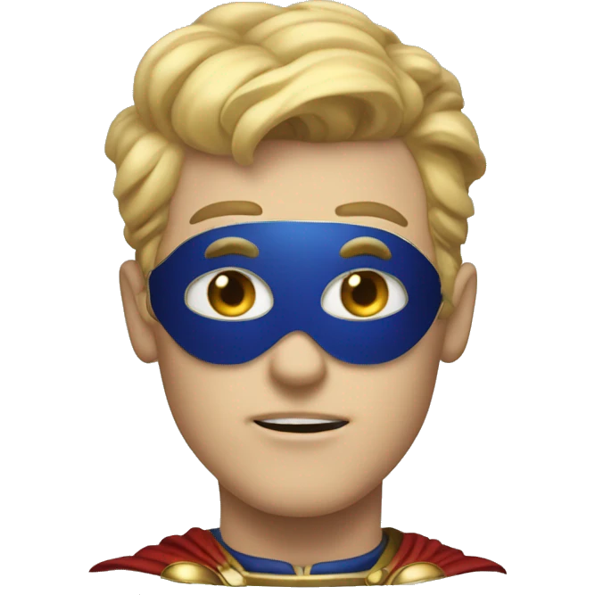 Emoji of Homelander from ‘The Boys’ series. USA flag-inspired costume with cape (red, blue, white). Confident, slightly menacing expression. emoji