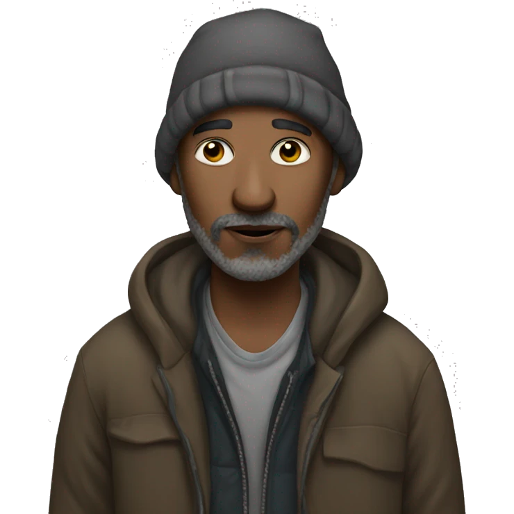 Homeless man with snow on face emoji