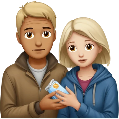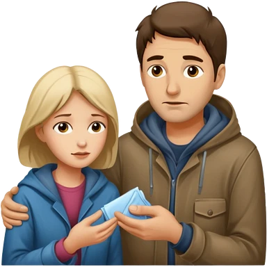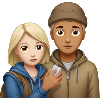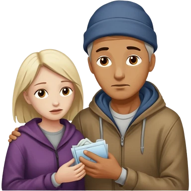 Man attending to a homeless woman emoji