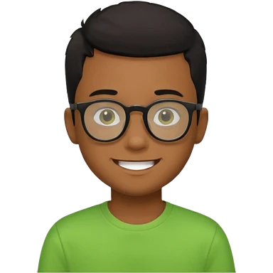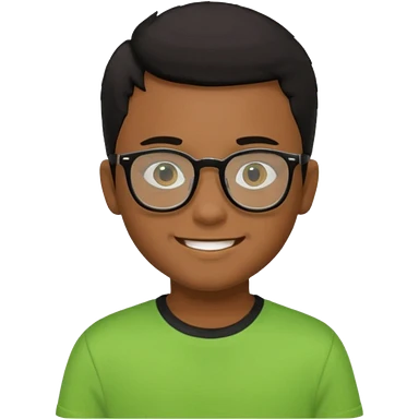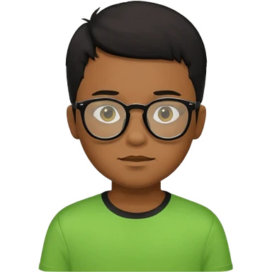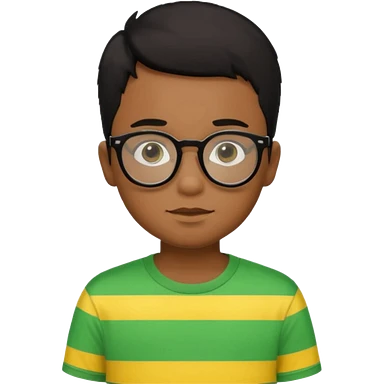Menino pardo com cabelo curto preto, de óculos preto e blusa verde e amarela emoji