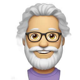 Crie um emoji de um homem careca, barba grande e grisalha, usando um óculos de grau redondo, sobrancelhas finas emoji