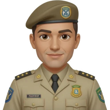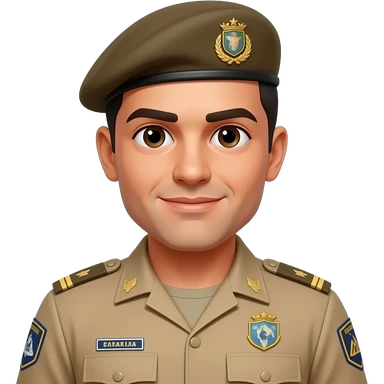 Homem com farda da policia militar de santa catarina, pmsc cor bege e boina bege escuro emoji | AI Emoji Generator