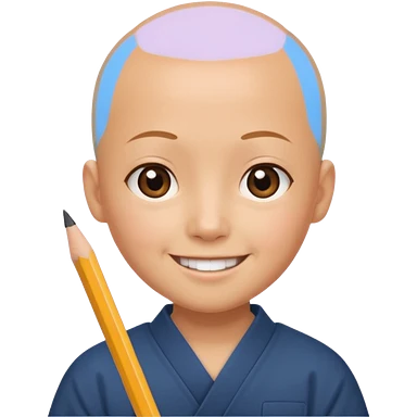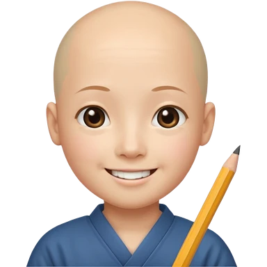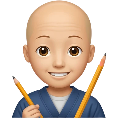 quero um personagem de descendencia japonesa, um pouco calvo e sorrindo com um lapis na mao emoji