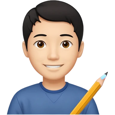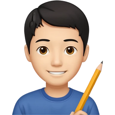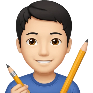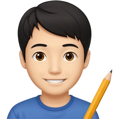 quero um personagem masculino japones, de pouco cabelo e sorrindo com um lapis na mao emoji
