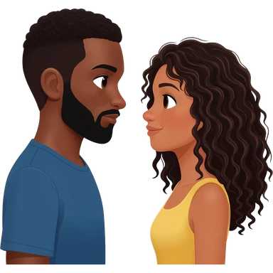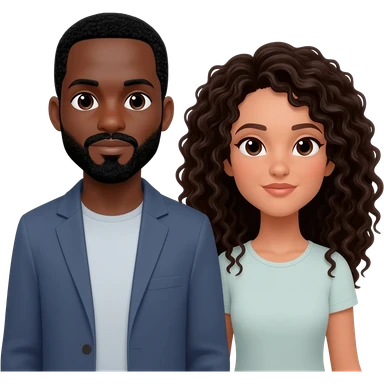Homem Negro com cavanhaque emulher branca cabelos cacheados e preto emoji | AI Emoji Generator