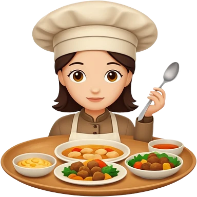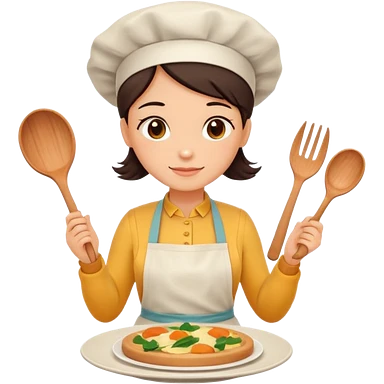 Home cooking humanless avatar in clean emoji-style illustration. Homemade dishes on a plate, warm cozy colors, simple shapes, flat design, high contrast, friendly and inviting. emoji