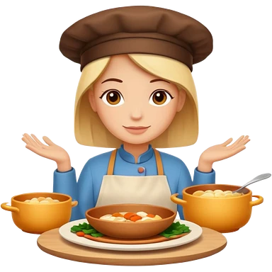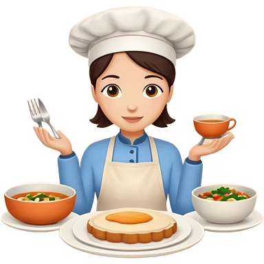 Homemade dishes on a plate, warm cozy colors, simple shapes, flat design, high contrast, friendly and inviting. emoji | AI Emoji Generator
