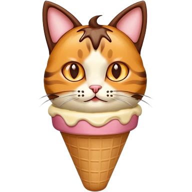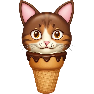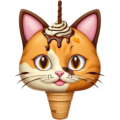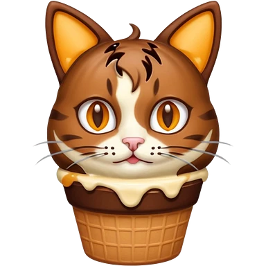 Haz un emoji de un helado de chocolate con sirope naranja, con cara de gato y orejas y bigotes de gato emoji