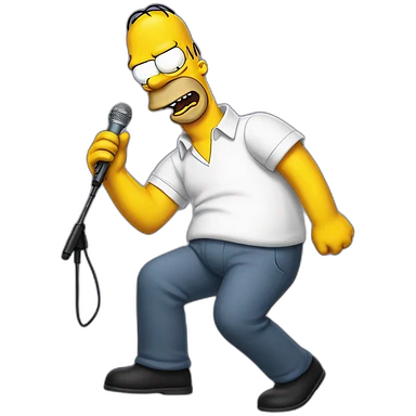 Homer Simpson smiling and holding a pink frosted donut, bright colors, simple background emoji